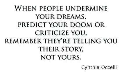 A fatal flaw in the human condition is that even if there is a great likelihood that something is true, we don’t want to believe it. A potentially fatal flaw for many creative people is to be brought down by the doubts of others. People without vision will likely never believe that things can change. But once it happens, no matter how great the tectonic shift, they are quick to accept this new reality as the one true reality.  Anyone who has ever set out to do something even slightly outside the norm has been mocked, questioned, and ridiculed.  Realize that people’s doubts aren’t a reflection on you, your abilities, or your ultimate outcome.  They are just upset at their own lack of imagination and inability to step out of their comfort zone, and you become a walking reminder of those insecurities.  Ignore the haters.